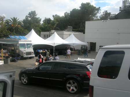 Catering tent backstage, behind the Bowl and the guys do their pre-sho meet & greet.