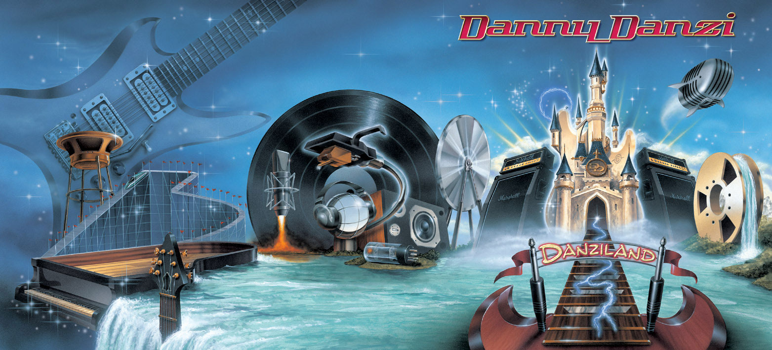 Now, tell us about the bloody marvellous CD artwork and cover....one of the best pictorial packages I have seen in a long time! DanziLand is my home. Everything you can think of is here man. Full recording studio, guitars hanging off the wall, basses, drums, keyboards, mixing consoles, outboard gear, every video game and game system known to man, pool table, wet bar, wine from all over the world, basketball court, swimming pool, dirtbike, killer car...a lil something for everyone. :) My bud Tommy would come here and look around at all my stuff and say "welcome to DanziLand". So the name stuck.