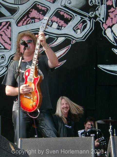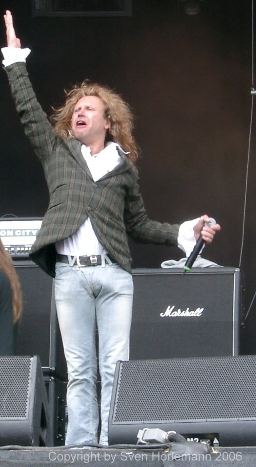 On a last minute decision I joined the second day of the festival, missing POWERWOLF, ANVIL and VICTORY. VICTORY just added new singer Jioti Parcharidis and drummer Achim Keller (PUMP) to the original line up of Peter Knorn (bass), Tommy Newton and Herman Frank (both guitar). Their latest release Fuel To The Fire was a re-recording of their classics, featuring the new voice. They decided to release this record because there was no possibility for the management to get the classic records of VICTORY re-released on CD. In 2006 they played some Club gigs, one officially broadcasted on German TV. Jioti sounds like a good mixture of his predecessors Charlie Huhn and Fernando Garcia. Infos: http://www.victory-music.com/ !