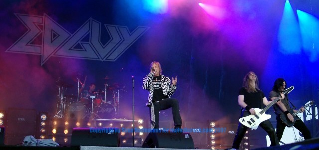 Saturdays headliners were EDGUY, a German melodic power metal outfit that released 9 records to date (if I am not mistaken). After superstar bands like THE SCORPIONS, JUDAS PRIEST, DIO, TWISTED SISTER, SLAYER (among others) it came as a surprise to see EDGUY getting the headlining spot. Some were skeptical, and yes, this included me. On the other hand EDGUY are very much present in the German charts with their releases and the songs were getting better with each record. As you might expect, their latest album ROCKET RIDE is my favorite. I have to admit I didn't even planned to stay until the end. But I did.