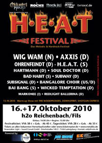 FRONTIERS RECORDS TO RELEASE TRIUMPH NEWEST "GREATEST HITS REMIXED" CD/DVD PACKAGE: Triumph, the legendary Canadian Hard Rock trio formed by Gil Moore (drums and vocals), Mike Levine (bass and keyboards) and Rik Emmett (guitars and vocals) are releasing in Europe on Frontiers Records the newest Greatest Hits compilation package on CD and DVD appropriately titled Greatest Hits Remixed. The two-disc set, which will be in the shops on May 14, includes a hit-laden 14 track cd, which was remixed by Rich Chycki (Aerosmith, Rush), giving the songs an incredible sonic wallop. A previously unreleased recording of Love Hurts will be the new lead single. The DVD features eleven promo and live videos in widescreen filmed over Triumph's career, as well five bonus features, including 3 more unreleased videos ("Child of the City," "Blinding Light Show" and "Love Hurts") and footage of Triumph's induction into the Canadian Music Hall of Fame in 2008. "We have been planning this release forever," says Mike Levine. "For years, Triumph fans have been demanding that we give them a fresh greatest hits package and they are going to love this one." The 6-panel digipak will also include a 20 pages full colour booklet, complete with liner notes, lyrics, credits and chockfull of vintage photos and will most certainly be a hit with Triumph's consistent legion of fans. Triumph pushed the limits of Arena Rock to the max with their legendary live shows and virtuoso playing. Add to it some of the most recognizable and celebrated radio classics ("Lay it on the Line", "Hold On", "Fight the Good Fight" and "Magic Power"), a vault full of gold and platinum sales awards for their ten studio albums and there you have one of the most successful rock acts of the 1970's/1980's! And now, fans both new and old will have the opportunity to discover/re-discover Triumph, with the all killer/no filler 'Greatest Hits Remixed.' Frontiers looks forward to work with Triumph and plans more surprises for the fans of this amazing band! "Greatest Hits Remixed" includes: CD: Allied Forces; Lay it on the Line; Follow Your Heart; Magic Power; I Live For the Weekend; Hold On; Just One Night; Fight the Good Fight; Spellbound; Never Surrender; Lights Go Down; Somebody's Out There; Rock and Roll Machine; Love Hurts. DVD: Follow Your Heart; Lay It On the Line; Spellbound; Magic Power; Lights Go Down; Hold On; Just One Night; Somebody's Out There; Allied Forces; Never Surrender; Never Say Never. Bonus Video: Child of the City (with Phil X on guitar); Blinding Light Show (Bootleg: Filmed on Fan Cam); Love Hurts. DVD Specs : Mix 2.0/5.1 / Screen 16:9 / Format NTSC Region free Weblinks: www.triumphmusic.com / www.frontiers.it / www.myspace.com/frontiersrecords. xx![]() MRF TICKETS - ON THEIR WAY: An update for all folks that are await MelodicRockFest 2 tickets - they are all in the air! Tickets went out to all on Monday and should be arriving at their various destinations any time now. To purchase tickets now - go to MelodicRockFest.com. MORE UPDATES ON H.E.A.T.'s FREEDOM ROCK: Two news updates from H.E.A.T. on the release of their upcoming Freedom Rock album: The record companies all around the world have been pushing the release date of "Freedom Rock" back and forth, but we think that we have the final release dates now. Here goes: Japan: 21 April 2010 / Northern Europe*: 12 May 2010 (*Sweden, Norway, Denmark, Finland, Iceland and Russia) Europe: 28 May 2010. "We are really pleased with the recording and look forward to what the listeners have to say," says Crash of H.E.A.T. Unfortunately, the release has been delayed due to record companies in Japan and in Europe wanting a synchronized release, Crash continues. "It is planned that the new album "Freedom Rock" will now to be released May 12. The original release date was scheduled for April 8 at the Sweden Rock Cruise. H.E.A.T will perform on the cruise with both old and new material to meet all those who bought tickets and people will have the opportunity to pre-order the album on the cruise. The single "Beg, beg, beg" from the new album will be available in a limited edition on the cruise." Jona Tee of H.E.A.T: "We obviously want to be there ourselves to party with all those who bought tickets for the cruise because of us, and we hope they have the patience to wait a few weeks longer for the album. European Tour - The interest in H.e.a.t in Europe is big and in April the band is going on a European tour while promoting the upcoming album." Tour schedule: 2010-04-23 Madrid Rock Kitchen ES 2010-04-24 Pamplona Sala Gares ES 2010-04-25 Barcelona Salamandra ES 2010-04-27 Munich, DE Backstage 2010-04-28 Ludwigsburg Rockfabrik DE 2010-04-29 Pratteln Z7 CH 2010-04-30 Burglengenfeld VA-Zentrum DE 2010-05-01 Vosselaar Biebob BE 2010-05-02 Bologna pSottotetto Sound Club IT 2010-05-04 Markthalle Hamburg DE AMERICAN HI-FI READY TO 'FIGHT THE FREQUENCY' ON JUNE 22: Press Release / American Hi-Fi is ready to Fight The Frequency and back to their roots with their fourth studio album, due out June 22 on their own label, Hi-Fi Killers/The Ascot Club (through Megaforce/RED/Sony). It's the highly anticipated follow-up to 2005's Hearts On Parade (Maverick). It was produced by singer/guitarist Stacy Jones and recorded at his studio in Los Angeles, The Deathstar. The first single and video, "Lost," from the original line-up--Stacy Jones (singer/guitarist), Drew Parsons (bass), Jamie Arentzen (guitars) and Brian Nolan (drums)will be released in the coming weeks. As Jones recently explained on Altpress.com: "I think we've circled back to the first record in terms of sonics and style. We've moved back to big, riff-driven guitar parts with melodies on top and a slightly harder edge." Jones later added, "In the past, there was always the pressures and expectations that came from being on a record label. Now, we have the freedom to put the business aside and just play rock music like we always wanted!" So what's the band been 