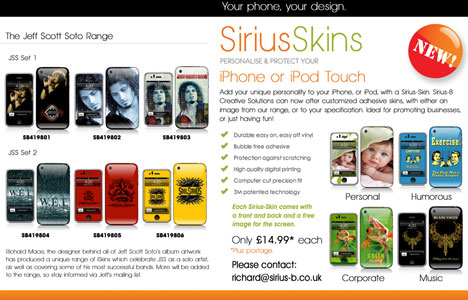FRONTIERS RECORDS TO RELEASE A NEW TESLA ALIVE IN EUROPE!: Tesla Alive In Europe released April 23. After 25 years, 12 albums, over 2,500 shows, over 16 million albums sold worldwide, Tesla is stronger than ever, on the heels of the release of one of the band's most successful studio releases to date Forever More. Continuing the momentum, Tesla: Jeff Keith (vocals), Frank Hannon (guitars), Brian Wheat (bass), Troy Luccketta (drums) and Dave Rude (guitar) have toured Europe after the successful release of their latest studio opus Forever More on Frontiers Records. As a testament to a very creative and productive chapter in the history of the band, Tesla release what can be considered a true "electric" live album recorded at various locations during the European shows in the summer of 2009. Alive In Europe! is filled with sweltering live songs including all the band's classics such as "Modern Day Cowboy", "Signs", "What You Give", "Little Suzi" and songs from the latest release such as the single "I Wanna Live", the album title track and more. A sincere and truly live sounding album which closes a chapter in the band's history and shows a vibrant band ready for the next step. Track listing: Forever More; I Wanna Live; Modern Day Cowboy; Heaven's Trail; What a Shame; Shine Away; Love Song; What You Give; The Way It Is; Breakin' Free; Hang Tough; So What!; Signs; Lil' Suzie; Into the Now. WebLinks: www.teslatheband.com * www.myspace.com/teslatheband * www.frontiers.it * www.myspace.com/frontiersrecords. ![]() NEW JSS iSKINS FOR THE IPHONE AND IPOD TOUCH: Richard Mace, at Sirius-B, the designer behind all of Jeff Scott Soto's album artwork has produced a unique range of iSkins which celebrate JSS as a solo artist, as well as covering some of his most iconic bands. "I've invested a lot of time and money into getting these iSkins just the way I want them. The 3M vinyl used has a permeable membrane, invisible to the naked eye, that avoids any bubbles, unlike cheaper alternatives! They are durable and will protect your phone from scratches. They are precision laser cut to fit iPhones and the iPod Touch. They are removable, so changing designs is easy, however, if you require a more permanent fixing they can be heated gently with a hair dryer which will allow the material to shrink wrap tightly. The image resolution is superb and the gloss finish looks like the natural back to the phone or iPod." You will be supplied with a front and back as well as being sent an image via email that can be used on the screen to match the design. "This is a new business venture for me, as I just love the potential of being highly creative and individual with these items. I can provide designs for any artist, or business and customize them to any requirements". Richard is currently creating a website where he will display many of his designs. These Jeff Scott Soto iSkins have been created specifically for JSS Fans, with Jeff's approval and blessing. These iSkins will soon be available on the JSS Online store, however mailing list members will be able to order them in advance and be the first to flash them about! Orders can be placed via PayPal at: richard@sirius-b.co.uk. Each iSkin is £14.99, which includes a front and back and free image. Standard postage applies: UK 50p, Europe 75p, US and rest of the world £1.00. Please allow up to two weeks for delivery. Please indicate the product you require an iSkin for, ie. iPhone or iPod Touch and please provide an email address so that the screen image can be forwarded to you. The first 20 orders will receive a FREE 'JSS Rocks' badge. If you would like any more information regarding the JSS iSkins (no jokes about ordering four so you can call them 4Skins!) then please email: richard@sirius-b.co.uk. Standard postage applies. Please allow up to two weeks for delivery. A Sirius-B Promotion in association with JSS Promotions. Copyright 2010. ![]() STEVE VAI'S OTHER WILD THINGS: Los Angeles, CA, February 10, 2010: Triple Grammy® Award winning guitarist Steve Vai will release a new live album, Where The Other Wild Things Are, on April 13, 2010 on his own Favored Nations Entertainment imprint. The 12-track album is the second companion CD to be released alongside the 2009 concert film "Live In Minneapolis: Where The Wild Things Are," which is currently available on DVD and Blu-ray. The DVD made a #4 debut on Billboard's Top Music DVD Chart, went Gold in both the USA and Canada and the track "Now We Run" was nominated for a 2010 Grammy® Award for Best Rock Instrumental. This new album features songs from the DVD that were not previously released on the first CD. Vai explains: "The original CD release for 'Where the Wild Things Are' consisted of songs from the concert DVD that had never been released in a live format before. It's a robust CD! The other songs that were performed at the concert but were not released on the CD were burning a hole in the hard drive and beckoning me for the light of day, so I thought, even though these songs have been released in live versions with other bands from the past, my new band with the two sweetly screaming violins gives them a whole new life. So we decided to release a second disc that contains all the tracks that were not on the first disc. And there you have it, "Where the Other Wild Things Are," and it's even 'robuster' than the first one." The live concert featured on the DVD and CDs was filmed and recorded at the historic State Theatre in Minneapolis, MN before a sold-out crowd during Vai's acclaimed 2007 String Theories World Tour. Vai chose the State Theatre for its lush acoustics and equally inspiring interior - his unprecedented guitar wizardry amazes throughout the film, as do the talents of the stellar band, an ace group of players, including two violinists, Vai put together and called String Theories. 2010 marks Steve Vai's 30th Anniversary in the music business. Vai first stepped into the spotlight in 1980 as a touring membe