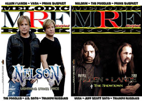 DANIELE LIVERANI & FRIENDS RETURN TO MELODIC ROCK AS A PRIME SUSPECT Frontiers Records is pleased to announce the release of Prime Suspect debut album on December 3. Prime Suspect is a new melodic rock combo formed by Daniele Liverani, Tommy Ermolli and Dario Ciccioni, three Italian musicians who came to the attention of the Melodic Rock crowd thanks to their performances on the three Khymera releases. Liverani, the most experienced musician of the lot, had a long career in the Italian HR/HM scene releasing albums with the Prog Metal groups Empty Tremor and Twinspirits and also with the Genius Rock Opera in 3 chapters, showcasing an international all star cast of singers including Daniel Gildenlow (Pain of Salvation), Mark Boals, DC Cooper (ex Royal Hunt) and many more. Since the Khymera last two albums saw the bulk of the songwriting from the brothers Tom and James Martin, Liverani started to put together some Melodic Rock tracks which could live on the quality of arrangement and performance of the previous Khymera releases. "The awesome songwriting of the Martin Brothers for the Khymera albums I've been arranging and producing inspired me a lot and that's why I decided to accept the challenge of writing some original material in the more Melodic Rock style" says Daniele Liverani presenting the new album. " I would say that Prime Suspect is a combination of what I've been learning with Khymera and my personal style and I have been thrilled with the result... It's been very refreshing to work on this record, and it's been awesome as usual to work all the musicians involved, that provided great performances and the right sound for this new challenge". After a few demos, the three musicians started looking for a suitable singer who could gel with the material written and the search was over when Olaf Senkbeil, from the German band Dreamtide, came into the picture. The icing on the cake was offered by the Swedish songwriter Christian Wolff (On The Rise, Johnny Lima, Mecca) who contributed with two songs "What Do You Want" and "It Could've Been You" for the amazing final result. "Basically there's a lot of classic melodic rock inside the tunes" tells Liverani "but the sound is very modern and powerful with a touch of experimentation that comes from my Progressive experience. That's an interesting combination that hopefully the listeners will find interesting and entertaining" A brilliant debut album which offers a contemporary and European sounding / flavoured Melodic Rock, which is granted to appeal to the fans of Khymera, Last Autumn's Dream and class AOR music. "Prime Suspect" track listing includes: What Do You Want; I'll Be Fine; Change This World; I Never Knew; I Would Like To Reach The Sun; It Could've Been You; Hear Me Calling; Deep In My Heart; So Strange; Watch Me. The songs "What Do You Want" and "Change This World" can exclusively be listened in full in streaming on the Frontiers Web radio. Tune in at: www.frontiers.it/webradio. xx![]() NELSON RELEASES FIRST MUSIC VIDEO IN 15 YEARS "YOU'RE ALL I NEED TONIGHT" Never before seen music video You're All I Need Tonight from Nelson's forthcoming album Lightning Strikes Twice premiers live on AOL Music and Noisecreep - www.noisecreep.com or www.music.aol.com. You're All I Need Tonight is the first music video created by Matthew & Gunnar Nelson in over 15 years. It is the first single to be released from the critically acclaimed new album "Lightning Strikes Twice" from Frontiers Records scheduled for release in Europe on November 5th, and in the U.S. in February 2011 from Frontiers Records USA. "Lightning Strikes Twice" is a sequel to Nelson's classic multi-platinum debut album, "After the Rain". You're All I Need Tonight captures the melodic rock signature Nelson sound and harmonies from the twin lead front men and songwriters performing at the top of their game. A-list stage performance led by Matthew Nelson and featuring backing musicians Juke Kartel, provide the perfect compliment to the powerful lead vocals of Gunnar Nelson, whose stellar vocal performance ignites the screen. Video trailer here: www.NelsonKicksAss.com OR www.youtube.com/watch?v=qKq8NaSnzOE. Nelson's single You're All I Need Tonight is now available for digital audio download purchase from Frontiers Records online at Amazon.com, iTunes and Napster. ![]() NEW LEVERTY / KUNES SONG NOW AVAILABLE For the princely sum of 99c, you can now own the new Leverty / Kunes classic hard rock single: All The Girls Are Crazy. Leverty & Kunes pay tribute to the songwriter, Mike Montgomery, from Paul Kossoff`s band Back Street Crawler. This is the debut effort between two longtime musical friends: Bill Leverty of Firehouse fame, who also has a stunning blues solo record, "Deep South" (www.leverty.com); and Cactus/Savoy Brown vocalist frontman Jimmy Kunes, who also has two solo records to his credit as Jimmy Kunes Band : "Slow Moving Vehicle" / Love Train and Gate Of All Saints (www.myspace.com/jimmykunes). The pair were thrilled to have the full support of Cayman Publishing to achieve the goal of bringing this classic gem back into the hearts and minds of true rock fans around the world. Leverty and Kunes recruited the powerful drumming talents of Andre LaBelle for this recording. Special thanks to David Clayton at Free Appreciation Society for his help and continuing support. Get your high quality digital copy today from any of the following outlets: cdbaby.com/cd/levertykunes / www.amazon.com / itunes.apple.com/us/album/all-the-girls-are-crazy-single/id399121647. ![]() POWER QUEST READY THEIR BLOOD ALLIANCE Power Quest have finished the recording part of their new album Blood Alliance, the follow up to 2008's highly acclaimed "Master of Illusion". Steve Williams checks in: "The recording of "Blood Alliance" has now finished at Foel Studios. Big thanks to Chris Fielding and Dave Anderson for all their hard work over the month we spent there. We worked 14 hours per day most days and e