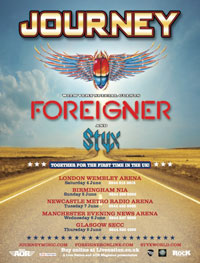 JOURNEY/STYX/FOREIGNER IN UK TOUR: It is now official - Journey will be joined by Styx and Foreigner on a UK tour next (northern) summer. Dates announced are: London Wembley Arena - June 4th Birmingham NIA - June 5th Newcastle Metro Radio Arena - June 7th Manchester Evening News Arena - June 8th Glasgow SECC - June 9th On Journey's return to Britain, guiatist Neal Schon said: "We're so excited to be coming back to the UK to play arenas with our friends Foreigner and Styx. Be prepared to hear a lot of hit songs." Foreigner guitarist Mick Jones adds: "This will be one of the main events of the summer. Bands who represent the magic era in classic rock together for the first time in my home country. Get ready to rock!" Styx guitarist James 'JY' Young enthuses: "Styx has always enjoyed sharing the stage with Journey, going back to the Santa Monica Civic Center in 1976. The tour we did with them in 2003 across the United States was an amazing success of sold-out arenas. Journey, Foreigner and Styx seems like a can't-miss 'guitars a-blazin', vocals amazin' kind of a classic rock evening." The tour will be sponsored by the brand new magazine Classic Rock Presents AOR. Editor Geoff Barton had the following to say: "With melodic rock on the resurgence, this tour is going to be one of the must-sees of 2011. We're happy to set the ball rolling by featuring Journey on the cover of our brand new magazine, Classic Rock Presents AOR, which goes on sale on November 17. And, of course, with Journey's classic song Don't Stop Believin' enjoying a brand new lease of life, it was only right that the track, making it back into the Top 10 nearly 30 years after its release, would be in the running to receive 'Event Of The Year' at our prestigious Classic Rock Roll Of Honour Awards." Tickets go on sale 9am on Friday November 12 priced at £42.50 adv London / £40.00 regionally (subject to booking fee) and are available from www.livenation.co.uk. ![]() FIREWORKS #42 OUT NOW - PRINT AND DIGITAL EDITIONS: Now we've got Firefest 2010 out of the way, time to let you all know Fireworks #42 is out NOW. 100 full-colour pages over-flowing with melodic rock goodness, this latest issue sees interviews with Vince Neil, LA Guns, Rob Halford, Zakk Wylde, Joe Satriani, Magnum, Terry Brock, Marci Free, Skin, Ronnie Wood, Spock's Beard, Dweezil Zappa, Edenbridge, Kamelot, White Widdow, Liv Kristine, James LaBrie, Marseille, Issa, Bangalore Choir, Tarja and MANY more. Also packed to the brim with more CD/DVD and live reviews than you could shake a pink fluffy stick at!! On top of all this, there is also a free 18 track CD featuring the likes of Bangalore Choir, Nelson, Skin, Phenomena, White Widdow, Kissin' Dynamite and lots more. ![]() The magazine can be ordered at www.rocktopia.net, in the online Shop, or bought in UK in WH Smith (see online store detector in Rocktopia for which WH Smith stores stock the magazine). Or for UK orders, can send a cheque for £6 (Payabel to 'Bruce Mee') to Fireworks Magazine, 10 Dunnock Close, Offerton, Stockport, SK2 5XD. Download version available exclusively in the FW Showcase (and PayPal link below) - right now! Back issues still available also. Also AhORa Rock Podcast #4 Available For Download & Stream - Issue #4 of AhORa Rock's excellent melodic rock programme, hosted by the wonderful Ms Pilar Sanchez, is now online for download or streaming. This latest issue features the latest releases from Nelson, Poodles, Gotthard, Kissin' Dynamite, White Widdow, Houston, Phenomena, Survivor, an exclusive Robin Beck track and many more! Check it out at www.rocktopia.net. Firefest Friday – Request For Help - One of our good friends dropped her phone in the Trent University on Friday night. It was found some time later in pieces, minus the Memory Card. It pains me that someone from our close-knit family scene would do this rather than hand the phone in. The SIM is useless, but contains irreplaceable family photos. If whoever took the Memory Card would be kind enough to return it to Fireworks Magazine at the address above, no questions asked, we would all be very grateful. Many thanks ~ Bruce. BCC LIVE IN BLACK COUNTRY: Black Country Communion, the critically acclaimed rock supergroup featuring vocalist/bassist Glenn Hughes (Deep Purple, Trapeze, Black Sabbath), award-winning blues-rock guitarist Joe Bonamassa, drummer Jason Bonham (Led Zeppelin, Foreigner) and keyboardist Derek Sherinian (Dream Theater, Billy Idol), today confirmed that they will perform two long-awaited UK concerts in December. Fittingly, the first concert will take place right in the heart of the Black Country at the legendary Wolverhampton Civic Hall on Wednesday 29th December, followed by a concert at London's o2 Shepherd's Bush Empire on Thursday 30th December. Planet Rock Radio will launch an exclusive 4-day ticket pre-sale from Monday 15th November, for full details visit www.planetrock.com/bcc. Tickets will then go on sale to the general public from 9.00am on Friday 19th November, via the National 24 Hour Box Office - 0871 230 1101, www.seetickets.com, www.eventim.co.uk. To read the online press release - www.noblepr.co.uk/Press_Releases/mascot/BCCTour.htm. TRIXTER RECORDING NEW STUDIO ALBUM: Steve Brown dropped me a short e-mail this morning - it reads: "Just wanted to let you know, the mighty Trixter has started work on a new CD...most of the songs are written and we've started tracking drums. Some song titles Drag Me Down, The Coolest Thing, Tattoos And Misery....it's sounding killer...the band is pumped." QUEEN PLANNING BIG 40th ANNIVERSARY YEAR: Via Billboard/Reuters/Gibson and more: "After almost 40 years with EMI, rock legends Queen have signed a deal with Universal Music Group, according to Reuters. Re-releases of the band's studio albums have been announced for 2011, which also marks Queen's 40th anniversary. "We are very excited, after all this time, to be embarking on a new phase of our career – with a new record com